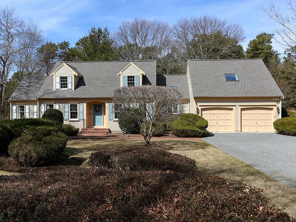 As you pull in the drive of this lovely Cape in a fine South of 28 neighborhood, you first notice the soft exterior colors of this home and the manicured landscaping. This is a hint of what's to come in this impeccably maintained and custom built 3 BR, 2.5 Bath home. Stepping in the foyer, your view is through to the Family room and private back yard. Formal LR & DR flank the foyer. It offers first floor living, with ample space for guests and family on the 2nd floor. The kitchen has oak shaker style cabinets & a skylight in its vaulted ceiling. 1st floor spacious MBR suite has a vaulted ceiling for contemporary feel. 2 BR & bath up, plus large media/play room with skylight. Step onto the rear deck and enjoy the peace & quiet of the lawn with treed buffer in rear of lot.Central A/C GAS FHA heat, 2 car garage entry to house is directly into mud room that also serves as access to the back yard, laundry, half bath and the Cape Cod favorite outdoor shower-for rinsing after beach and boating.View floor plans and walkthrough video under photos.Upstairs BRs and media room are virtually staged. Such an amazing and convenient location. Very close to Prince Cove-a deep saltwater town owned marina and boat launch ramp.Perfect for boaters and kayakers! Only a couple of minutes' drive to all the services and shopping you could want at Marstons Mills Marketplace and beyond at Mashpee Commons. House SF may not include finished space over garage. Passing Title V. Taxes may vary by occupancy. Buyers and agents to verify all measurements and details if relying on them for purchase.