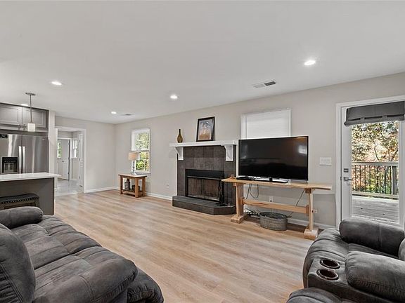 Ease and everyday comfort meet Creekside living in this home with a smooth, open layout. The main floor offers an owner’s suite with private deck access, a fireplace-anchored great room that flows to the dining area, and a cook’s kitchen with beautiful cabinetry, solid-surface counters, stainless appliances, and a connection that lets you choose gas or electric for the range. Waterproof, pet-tough LVP carries through the living areas. Off the mudroom, a versatile flex room works beautifully as an office, studio, or hobby spot. The daylight terrace level adds real elbow room with two additional bedrooms, a full bath, and a rec room with wet bar—great for game nights, guests, or multigenerational living. Whole-home upgrades include a $3,000 water-filtration system and an invisible fence to keep pets secure. Sited on ~2.04 acres, the property feels tucked-away and connected to nature with a robust rear creek. Stroll the gentle path down to the water, there’s even a fire pit along the way for starry evenings. No HOA keeps things uncomplicated. All of this is minutes to GA-400, Historic Dahlonega Square, Dawsonville, Cleveland, and Gainesville—an easy base for all your North Georgia outings