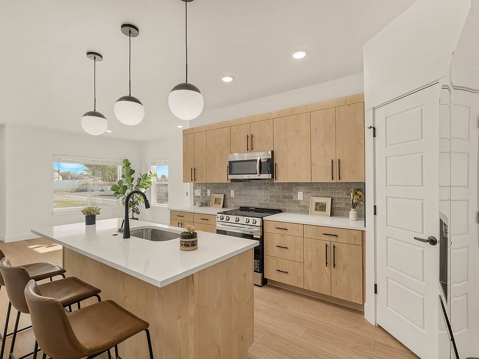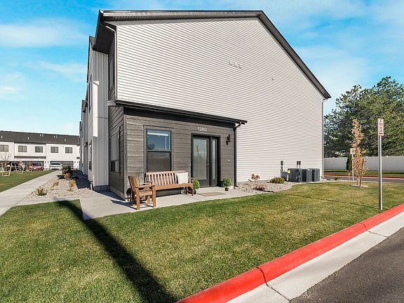 Don't miss your chance to live in this luxury brand new townhome on the vibrant west side near Skyline High School and just minutes from Idaho National Laboratory (INL). This desireable end unit has it's own private entrance and patio. It is thoughtfully designed with high-end finishes and a spacious layout. This home features an open-concept main floor with a large island perfect for casual dining, quartz countertops, stainless steel appliances (fridge included), a walk-in pantry, and stylish LVP flooring. A convenient half bath adds to the functionality. Upstairs, unwind in the luxurious master suite with dual quartz vanities, a freestanding soaking tub, tiled shower, and walk-in closet. Two additional bedrooms, a full guest bath with tub/shower combo, and an upstairs laundry room offer comfort and convenience. Located minutes from shopping, restaurants, medical facilities, and schools, this modern townhome is part of a growing community you'll love to call home! Washer and Dryer are included and will be installed prior to move in. Home will have blinds installed on all windows prior to move in.