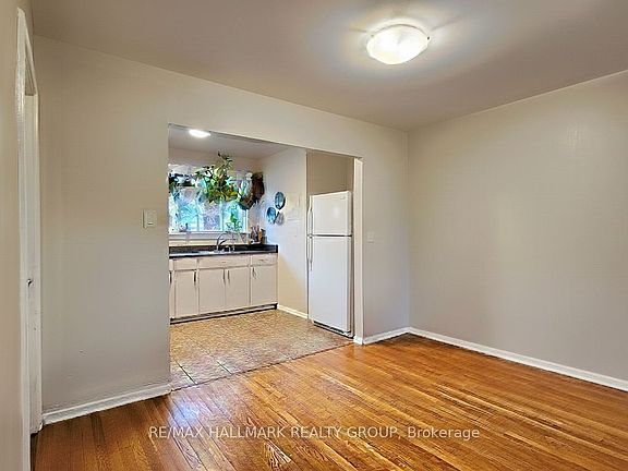 Spacious top level 2 bedroom apartment in residential neighbourhood with tree lined streets. Windows face onto large front yard. Hardwood flooring. Kitchen has a large window facing south. One bedroom faces the front of the building, the other faces the back, with the bathroom in between. Parking included, as assigned by Landlord. Tenant pays hydro and sets up their own account. Coin laundry and storage locker on lower level. 1st and last months' rent deposit payable to Remax due upon signing of Lease. Lease has Schedule of rules, including no smoking, requirement for liability insurance. Credit and references check required. Available Nov 1. Tenant moving out Oct 31. Pictures have had the furniture and moving boxes virtually removed.