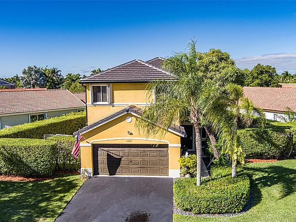 Beautifully maintained two-story home with volume ceilings that fill the space with natural light. The renovated kitchen features shaker-style cabinetry,quartz countertops,and S/S appliances. The primary bedroom is conveniently located on the ground floor with an ensuite bath. Upstairs are 4 additional bedrooms, including an oversized room perfect for a home office,gym,media room,or a guest suite. Major improvements: a brand-new roof and gutter system (July 2025) and accordion shutters on the upper windows & main sliders. The patio provides a perfect setting for relaxation or family barbecues, blending indoor and outdoor living spaces.Located in Weston’s most desirable community w/access to pools,playgrounds,sports courts,walking trails,easy access to major highways,shopping and dining.