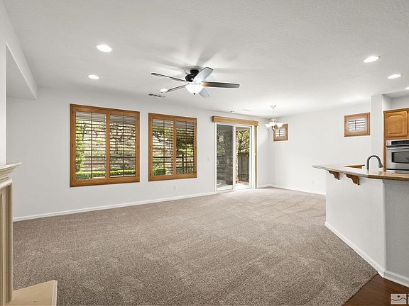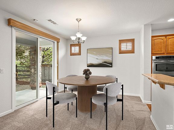 MOTIVATED SELLER! Welcome to 1280 Meridian Ranch Dr, Reno, where comfort meets convenience in this beautifully appointed 1,644 square foot residence. This charming home, nestled in the Del Webb 55+ community of Sierra Canyon Somerset, offers a harmonious blend of stylish living and practical amenities that cater to those seeking a relaxed yet refined lifestyle., Enter to discover a home that has been lovingly refreshed with new interior paint throughout, creating a bright and welcoming atmosphere. The newly installed carpet adds warmth underfoot, while genuine wood flooring in select areas brings a touch of natural elegance to the living spaces. These recent updates ensure the home feels contemporary and move-in ready, allowing you to begin enjoying your new Sierra Canyon lifestyle immediately. The thoughtful floorplan features two generous bedrooms and two full bathrooms, providing ample space for both comfortable living and welcoming guests. One of the most appealing aspects of this home is its versatile space that can serve as either an office or den, offering flexibility to create a personalized environment tailored to your unique needs—whether you require a dedicated workspace, a cozy reading nook, or a media room for entertaining. Throughout the home, plantation shutters adorn the windows, offering adjustable privacy and light control while adding architectural interest to each room. These classic window treatments complement the overall design aesthetic and provide an upscale finishing touch to the interior spaces. The heart of this home is undoubtedly its well-appointed kitchen, featuring gleaming granite countertops that provide both beauty and durability. Premium stainless steel appliances stand ready for your culinary adventures, whether you're preparing a simple weeknight meal or hosting a dinner party for friends and neighbors. The kitchen's thoughtful design ensures efficiency and ease while cooking, with ample storage and workspace to accommodate all your needs. Gather around the gas fireplace in the main living area, where you'll find the perfect spot to relax with a good book or enjoy conversation with loved ones. This inviting focal point creates a warm ambiance during Nevada's cooler months while adding visual interest to the space year-round. The open concept design encourages natural flow between living areas, making this home ideal for both everyday living and occasional entertaining. The primary bedroom offers a peaceful retreat at day's end, with enough space for a king-sized bed and additional furnishings. Its en-suite bathroom provides privacy and convenience, while the second bedroom and bathroom accommodate guests with equal comfort and style. Beyond the walls of this lovely residence lies the exceptional Sierra Canyon Somerset community, designed to offer a vibrant, engaging lifestyle. As a resident, you'll enjoy privileged access to an impressive array of amenities that foster both physical wellness and social connection. The community clubhouse serves as the social hub where neighbors become friends through various activities and events. The well-equipped fitness center features modern exercise equipment for residents' wellness goals. During warmer months, the community swimming pool offers refreshing respite from the Nevada sun, while the spa/hot tub provides year-round relaxation for tired muscles. Tennis and Pickleball courts are conveniently located nearby, and residents have access to the community golf course. These thoughtfully planned amenities create countless opportunities for recreation & socialization. The Northwest Reno location offers an ideal balance of peaceful suburban living with convenient access to essential services and exciting attractions. This well-established neighborhood provides a sense of community and stability while positioning you close to everyday conveniences and recreational opportunities. Priced to sell!