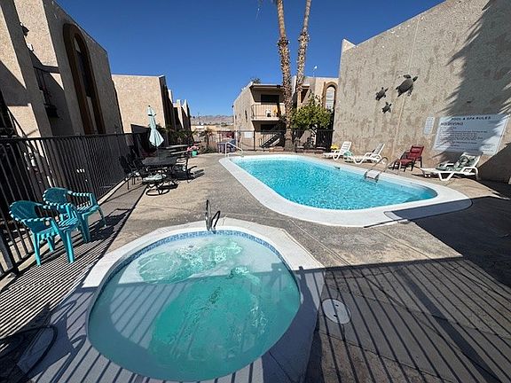 Across from Chaparral Golf Course, Restaurant, and Clubhouse plus you are walking distance to the Colorado river, and Rotary Park just down the road with all its Dog Parks, Family picnic areas, boat launch, skate and enduro tracks, something for everyone. The interior of this Apt has new Vinyl care flooring in traffic areas and comfort soft flooring in bedroom and bathroom. Looks great and easy to clean.All Appliances included, most new! Kitchen is galley style and has new flooring, appliances and includes separate dinette area to enjoy meals or sit out on the balcony with your morning brew, relaxing with evening dinner at Sunset or just sit and enjoy the Az starry night skies. Huge pool with gated entry plus heated spa, courtyard garden areas and additional storage room on balcony. Buck Reynolds Real