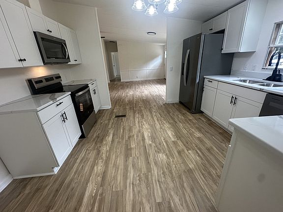 Completely remodeled manufactured home situated on 5 acres in Holladay, TN. This 3-bedroom, 2-bath residence features a new roof, new HVAC system, and updated interior finishes throughout. The kitchen offers stainless steel appliances, modern cabinetry, and custom tile work with quartz countertops, while the bathrooms have been fully updated with stylish fixtures and tile accents.