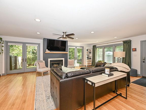 First-floor laundryLarge two-car garageStone cape codDining roomLarge fenced backyardLarge pella windowsNatural fireplace