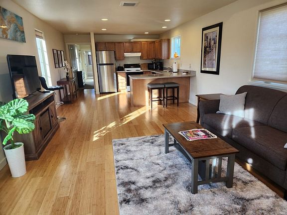 Move in ready! This fully furnished, two-bedroom, one-bath apartment is located on the upper level of the Carriage House. From the entry door, the large living space features tasteful furnishings, high ceilings, bamboo floors and large windows. A fully equipped kitchen has ample storage with a pantry and long, solid surface countertops.