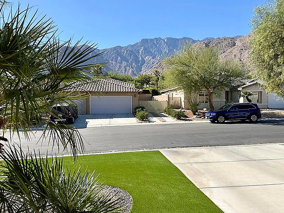 Experience the best of desert living in this beautifully updated home in the desirable Mountain Gate community of Palm Springs. This charming 3-bedroom residence has 2 bathrooms and owned solar with a battery backup. It is the ideal choice for anyone seeking a contemporary, move-in-ready property. The light-filled interior features designer tile and rich engineered bamboo flooring.The main area of the home has an open floor plan, with a refreshed gas fireplace in the living room and a media center with indirect lighting installed by California Closets. The kitchen is designed for both style and function with a dine-in prep island, warm wood cabinetry, and granite countertops. The adjacent dining area has large windows and sliding glass doors to the wood-grain-tiled back porch with an Alumiwood pergola. The private backyard includes a recently installed heated spool, artificial turf, and lush landscaping creating an oasis perfect for indoor-outdoor entertaining.The primary suite also accesses this backyard retreat. It includes an en-suite bathroom with an updated shower; there is also ample closet space. A second bedroom, located at the front of the home, offers a versatile library wall with a queen-size Murphy bed--also crafted by California Closets--making it ideal as a guest room or office. The central bedroom with a French-door entry can provide even more flexibility as a media room or workspace. The guest bathroom is off the hall and features an updated tub/shower, a new sink, and a new toilet.Mountain Gate is a tranquil, gated community known for its outstanding amenities, including multiple pools, tennis courts, parks, playgrounds, and access to nearby hiking trails. The CV Link bike and pedestrian path circles the community, offering easy connectivity throughout the Coachella Valley. This Palm Springs home blends comfort, convenience, and resort-style living in one of the area's most sought-after neighborhoods.