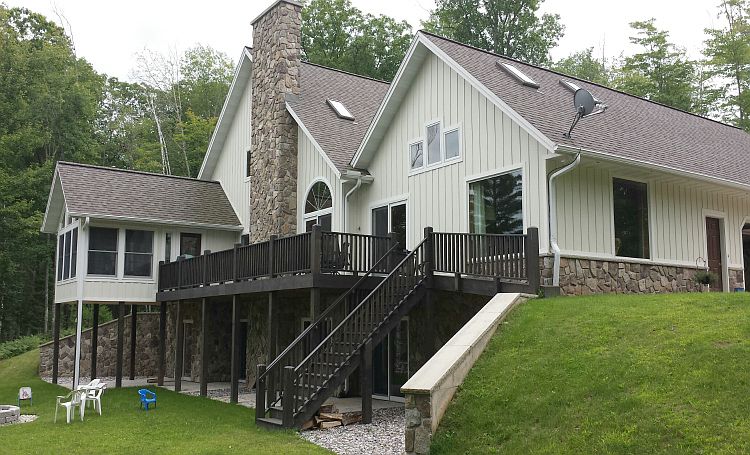 This expansive, beautiful green home with high-quality, high-end features is situated on 4 secluded acres with ample frontage on the Menominee River and trail access to the Spread Eagle Barrens. This newer home with 4 bedrooms, 3 full baths, and 2 half baths features a grand, open-concept living room, formal dining room, hardwood floors, and vaulted ceilings. The beautiful kitchen features custom walnut counter tops, a stone fireplace, stainless steel Viking appliances, Miele dishwasher, and coffee/cappuccino center. Additional features include radiant heat, geothermal heating/cooling, finished/insulated garage, a beautiful master suite with walk-in closet and glass block master bath, plus a walk-out lower level with fireplace, bar, exercise room, sauna, theater room, and guest bedroom/bath.