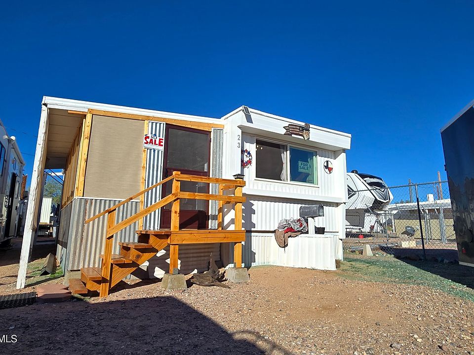 Very motivated Sellers! More photos coming soon! Recently renovated Fleetwood home with brand new wood plank flooring in the kitchen and main living areas and brand new carpet in the primary bedroom. New kitchen cabinets, countertops, and appliances. New paint throughout. Located in a quiet and meticulously well kept 55+ community. This home also has a recently built Arizona room and a large utility shed with the option to lease a secondary utility shed. Occupants of the park are a friendly mix of year round residents and winter visitors that have a strong sense of community. Residency must be approved by the park manager via application for background and credit check. The park manager has cared for and lived at the park for over 20 years. RV parking included!