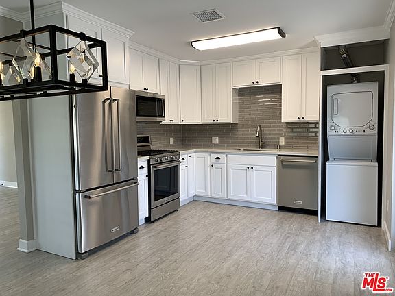 This one is a Must See!! Completely renovated Upper unit in handsome Spanish Miracle Mile duplex. Loads of windows to brighten this spacious, charming home. Large living room with crown moulding & private, front-facing balcony, stunning open kitchen and dining area with all new gorgeous cabinetry, quartz counter tops and includes high-end stainless steel appliances (3-door fridge, gas range, microwave, dishwasher and discreetly-hidden stackable washer & dryer). Two generous-sized bedrooms with ample closet space, and BOTH bathrooms feature glass enclosures & fab custom tile. This home is bright & sunny with a soothing tasteful color palate. Sparkling clean with new windows/doors (stylish window coverings included!), designer lighting fixtures and plumbing fixtures. Central heating and air to stay comfy all year round. Super close to Downtown, WeHo, & Beverly Hills with easy freeway access. Ample parking on wide tree-lined street. Be the first to live in this very special property!