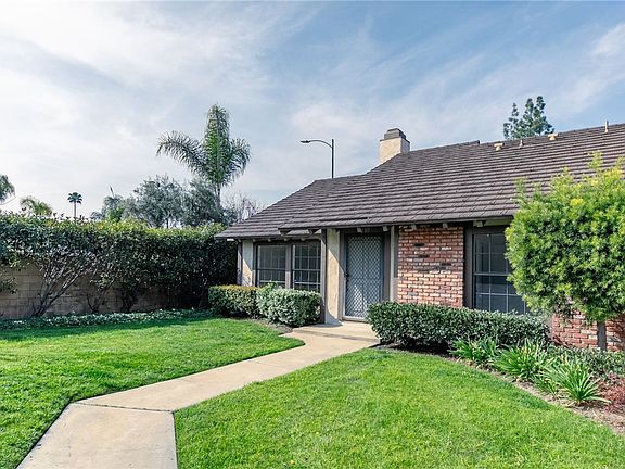 Don't miss out on this well maintained end unit home located in The Gables community. As you enter the oversized front door you'll notice the vaulted ceiling and cozy fireplace perfect for rainy days and nights at home. The big front windows bring in lots of natural light to this spacious living room. Bedroom one looks out to the grassy front of the unit and has mirrored closet doors and double door entry. Down the hall is the primary bedroom which faces the back patio and also has vaulted ceilings, two closets with mirrored closet doors and attached bathroom. You'll love the oversized kitchen that has room for your dining table and entertaining space. Upgrades include wood floors, stone counters, recessed lighting, big pantry, dishwasher, five burner gas stove and sliding glass door to the patio. Just outside the kitchen is a tiled patio with direct access to the two car garage. Just pop open the garage, pull your car in and have the convenience of accessing your unit through your own patio space. With only one shared wall and no one above or below you will notice how peaceful and quiet this complex is. As an added bonus the laundry hook ups are located inside the unit in the laundry closet. This complex is not far from dining and shopping both East and West along Imperial Hwy.