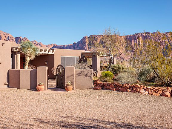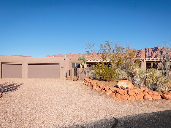 This custom former parade home (2003) has 3,077 square feet and sits on a generously-sized .73 acre lot on a corner lot on a quiet cul-de-sac in southern Utah's premiere desert community. Built using a polysteel system that uses insulated concrete forms (ICFs) to build durable, energy-efficient and structurally-sound homes, this lovely home has 3 bedrooms and 2 bathrooms, a formal living area as well as a family room. There's a gourmet kitchen (with high end SubZero, Wolf, and ASKO appliances), a built-in safe room, alarm system, solar panels, and built-in Murphy bed. A large 175 square foot heated and cooled room off of the 3 car garage can be used as a home office, workshop, art studio or home gym. The home has been restucco'ed by the current owners. Quiet, peaceful, and secluded. Stunning views of towering red cliffs and endless sagebrush. 1280 Mochni is situated just a short 5-10 minute walk to the renowned Kayenta Art Village, with its art galleries, restaurants, shops, Center for the Arts, 25 meter swimming pool, and more!