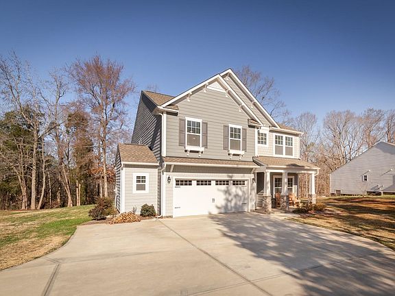 Must-see, like new home on beautiful 1-acre lot, with no HOA!! Private drive with stone columns, long concrete driveway and turn-around/parking pad on side. Beautiful open floor plan, perfect for entertaining! Builder upgrades included fiber cement siding, covered front porch and rear deck, spacious kitchen with quartz counter tops and large island, stainless steel appliances, recessed cans and pendant lighting, plenty of cabinet space, separate pantry, large great room with wood burning fireplace, private study/office , tons of windows let in an amazing amount of natural light! Level 2 Sustainable wood laminate flooring on 1st floor. Large primary suite with tray ceiling and huge walk-in closet. Primary bathroom has dual vanities with granite countertop, 42" x 60" garden tub under large picture window, separate tiled shower, & private water closet. Ceramic tile in bathrooms. Large bonus room on 2nd floor! Large 2-car garage, complete with work bench and cabinets. Enjoy low SC taxes!!