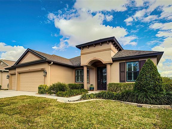 ***Back On Market 2/12/21*** MUST SEE, with pond view, in desirable Deerfield Lakes! Built in 2014 by William Ryan Homes, the Canaveral model was designed with comfort in mind for the entire family. Owners have spared no expense in upgrading the home, including adding the largest available master bedroom option. Offering nearly 2,300 sf of living space, there are 3 oversize bedrooms, large den/office w/closet, 3 full baths, 3-car garage, and generous and wide-open kitchen/dining/family room combo. With a gorgeous 8' leaded glass door entry, architectural upgrades abound and include a 36" mosaic tile floor accent in foyer, crown molding, tray ceilings, 17" tile throughout the main living space, 6" tall baseboards and 3" wide plantation shutters throughout. The secondary bedrooms are huge and are accessed through a door from the living area into a shared hallway, offering complete privacy. One of the bedrooms is a true junior suite, with walk-in closet and en-suite bathroom. The beautiful eat-in kitchen boasts a large walk-in pantry and oversize island with seating space. It's equipped with stainless appliances, including a French door refrigerator and flat surface range, plentiful granite counter space, gorgeous dark wood cabinets with upgraded stainless steel pulls, and seamlessly adjoins an amply-sized, light-filled dining nook. Beautiful 8' French doors lead out to a covered lanai overlooking an extensively landscaped backyard, complete with natural flagstone pavers and peaceful pond view. The convenient grilling cabana is yours to keep! Indoors, enjoy the pretty view from your luxurious master suite, complete with a stunning bay window, wide plank laminate floors, and tray ceiling, beautifully accented by a trendy chandelier and recessed LED lighting. The beautifully 20" tiled master bath provides a Koehler jetted tub, separate step-in shower with frameless door, spacious walk-in closet with custom closet system, granite topped vanity with dual undermount sinks, and water closet, for privacy. This is a turnkey, newer built home, with all the upgrades you wish you would have chosen yourself! The additional features include (please ask listing agent for complete list): laundry room with cabinetry; epoxy coated garage floors; built-in attic ladder access for extra storage space; new water softener; new reverse osmosis system in the kitchen; WHOLE HOUSE GENERATOR with 30 gallon fuel caddy, and so much more! Deerfield Lakes is family friendly community with a playground, low HOA, and no CDDs. Located at the corner of the Suncoast Parkway and SR 52. Currently being widened, SR 52 will become 6 lanes for the future location of Moffitt North Hospital, restaurants, and retail stores.