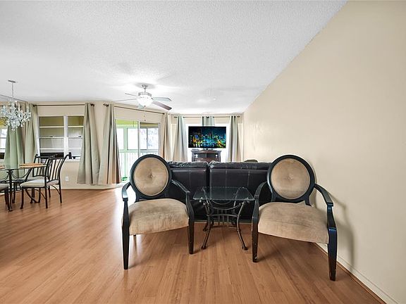 Best priced unit over 1000 square feet directly overlooking the Golf Course in the Century Village. Gated 55+ community! Laminate flooring throughout, washer and dryer in-unit, Enclosed screened patio overlooking Golf Course! Community amenities to include free bus transportation, clubhouse, theaters, playrooms, gym, pools, and marketplace. Restriction on rentals for the first two years of ownership.