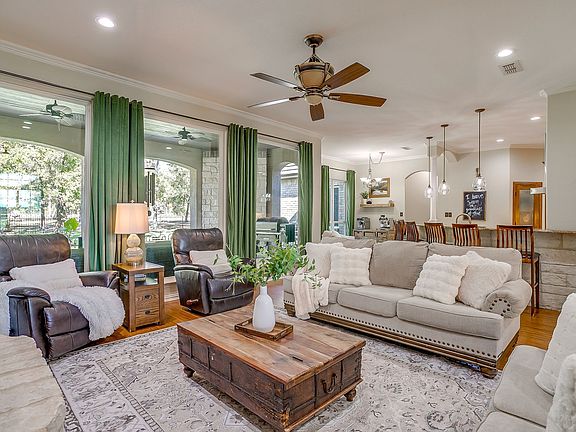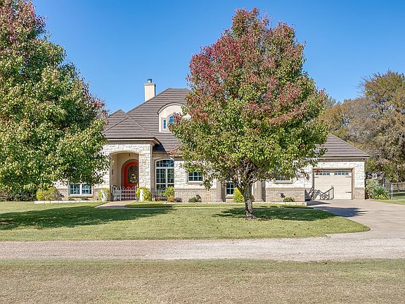 Welcome to this true Texas retreat with 22+ acres of country living at its finest! This exceptional property combines wide-open space, wooded acreage, hay field, orchard, shop and motorhome bay, and space for everyone in one incredible homestead. Deer and wildlife are abundant, and with the Brazos River nearby, you’ll enjoy a setting that feels secluded yet conveniently close to town. The four-bedroom home was designed for both comfort and versatility, featuring multiple living and dining areas, flexible spaces, abundant storage, and a welcoming sun filled living room with a fireplace as its centerpiece. A dedicated office and game room offer flexibility for work, hobbies, or entertainment, and the zoned temperature control keeps the home comfortable year-round. The kitchen blends functionality with country charm, offering ample cabinet space, SS appliances, walk in pantry, commercial vent, granite, and so much more. Outside, this property is as practical as it is picturesque. A pipe fence surrounds 3 sides and it could be cross fenced for cattle, horses, or other animals. The huge backyard is fully fenced with mutiple access points and there is a separately fenced dog run. The class A motorhome bay with full hookups, 4 bay detached garage, and additional storage makes it ideal for anyone needing space for equipment, hobbies, or business use. A custom automated chicken coop adds to the property’s self-sufficient appeal, making it perfectly suited for those dreaming of a true country lifestyle. The outdoor living areas are equally impressive. A spacious covered patio with a built-in grill and WB fireplace, plus a large open patio create the perfect place to gather with friends or enjoy quiet evenings watching the purple martins and deer that frequent the area. This property isn’t just a home—it’s a lifestyle. Welcome to the best of country living—making memories in the kind of quiet that only wide-open Texas land can provide.