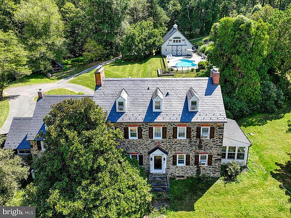 Live authentically. Quintessential stone farmhouse circa 1800 on 14.65 acres of rolling pastoral land. This piece of history has been lovingly restored with original details intact. A very functional farmette with three pastures, five stall barn, run-in shed & fenced exercise arena. Incredible party barn with loft and a plethora of possibilities. Sublime sparkling pool perched with a view... truly an oasis. Float while you gaze at your four legged friends. Five fireplaces. Very special setting that exudes soul and captures your heart. Subdivision potential. Cultivate your existence. The art of uniting human and home.