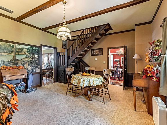 Welcome to one of North Louisiana's largest dog trot homes, a remarkable 1847 build offering over 7,500 total square feet on 14 acres. At the heart of the home is the wide open breezeway, connecting living areas and providing peaceful outdoor seating. From here, step into the main living and dining room, a spacious area with direct flow into the breakfast nook and kitchen. Just off the kitchen, you'll find a conveniently placed bathroom. Moving through the home, a formal dining space opens into a second living room, offering additional room for entertaining or relaxing, with a dedicated office tucked off to the side. Upstairs, the layout includes two generously sized bedrooms, a central sitting area, and a full bath. The guest suite is a self-contained retreat with its own bedroom, living space, and bathroom, connected by the breezeway. Outdoors, the property features multiple porches, a detached two-car carport, storage buildings, and an above-ground pool. This extraordinary property combines historic character, versatile living areas, and expansive acreage.