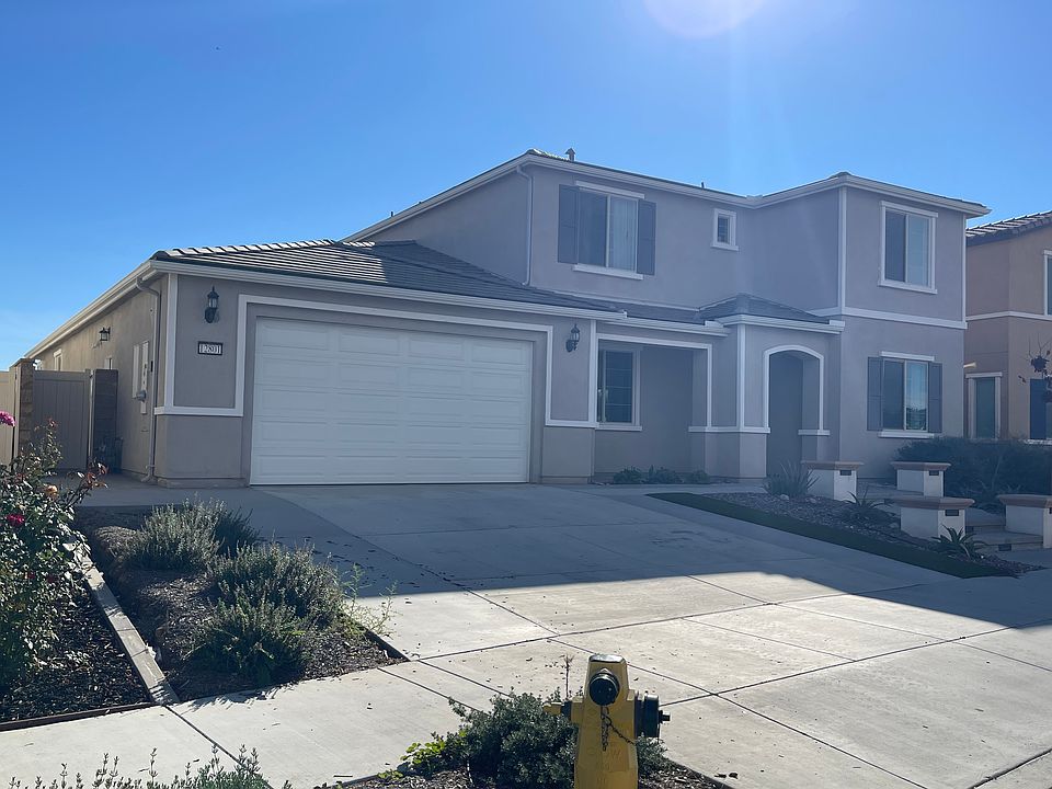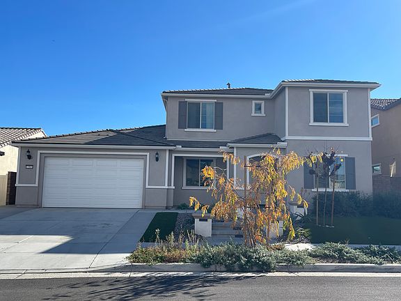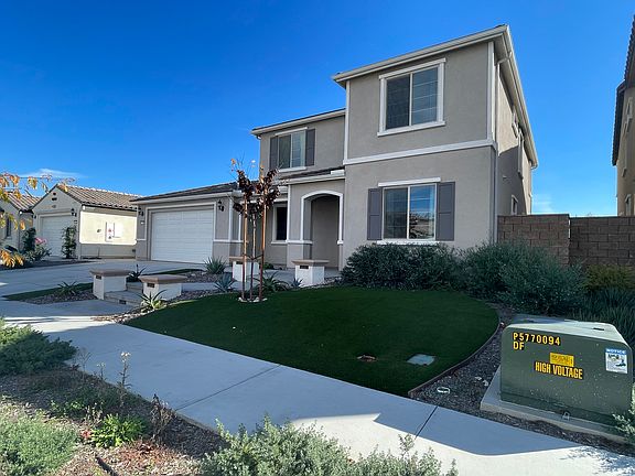 Energy-efficient home with solar system! Draught tolerant low maintenance front and back yard! Nestled within the gated community of Highland Grove, this ready to move in brand-new two-Story 5-bed 4-bath home has spacious open-concept layout. The main floor has an expansive family gathering room that opens into the kitchen and cafe, with the Owner's Suite overlooking the backyard. The bedroom near the front of the home offers privacy for guests. Open kitchen features with white cabinets, center Island, granite countertop and stainless steel appliances. Finishing off the ground floor, you will find an individual laundry room with sink. Upstairs the spacious open loft can be used as an additional entertainment or game space. There are three more bedrooms and two full bathrooms. The family-friendly community is close to good schools, shopping, 91 and I-15 freeways, providing the perfect blend of suburban tranquility and urban convenience. Renters pay for the utilities and solar fee.