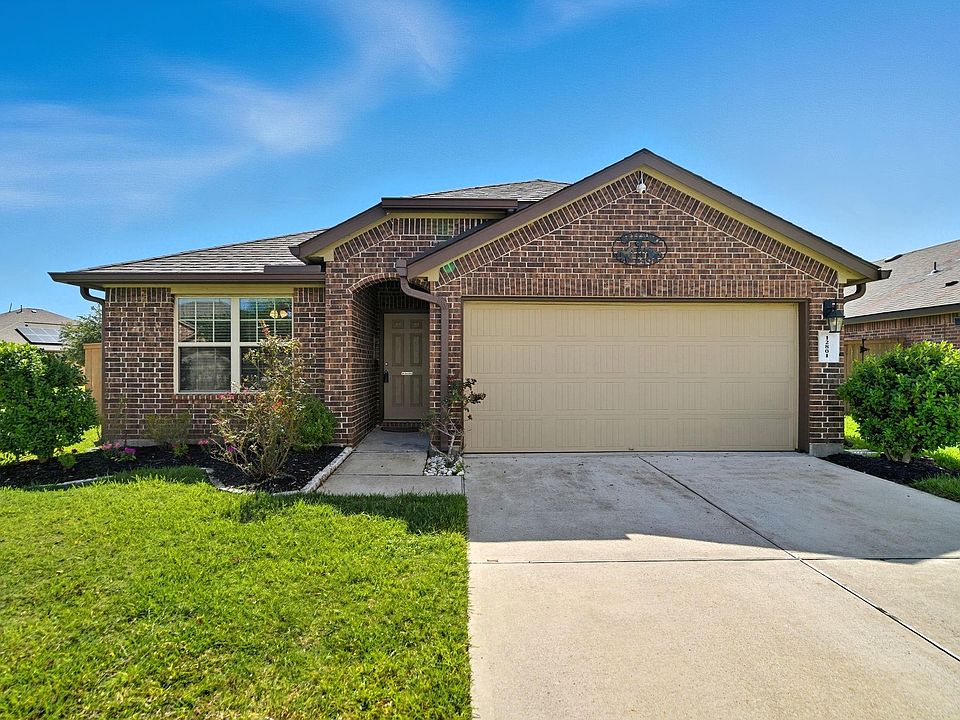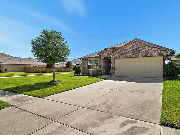 Be Careful, this 3-bedroom, 2-bath home comes LOADED! 4 Sides Brick, Tile in all public areas, carpeted bedrooms, main bathroom with oversized walk-in shower, double sinks, and huge closet space. XLG Kitchen featuring Awesome Granite counter/bar space, gas cooking, and a Refrigerator included! In-house large laundry room, Washer and Dryer stay! The garage features an auto opener and a Sprinkler system for this great corner lot. Enjoy energy-saving features to keep your utility bills low. Lago Mars' famous Lagoon Pool, nearby Buckees, and easy access to Houston or Galveston make this a complete package. Call today for a private tour.