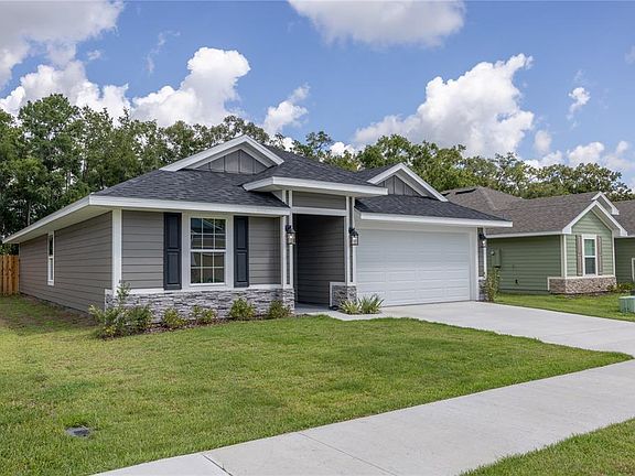 Move-In Ready 3BR/2BA Home in Savannah Station – Special 3.99% Financing Available! Seller concessions include a special finance rate of 3.99% through the builder’s preferred lender, Acrisure Mortgage, which offers FHA and VA loan options, or up to $25,000 toward closing costs. Located in the sought-after Savannah Station community in Alachua, FL, this 3-bedroom, 2-bath home offers 1,512 sq. ft. of comfortable living space on Lot 258. Enjoy the charm of a quiet, country-like setting just minutes from Gainesville, Alachua, and Lake City, with convenient access to shopping and amenities. The home’s inviting exterior features Hardy siding, stacked stone accents, and a large covered front porch. Inside, you’ll find LVP flooring throughout the main living areas (excluding bedrooms), a spacious family room, and a dining area that opens to the fenced backyard, perfect for relaxing or entertaining. The kitchen is designed for both style and function. It showcases a large granite island, upgraded cabinetry, granite countertops, and stainless steel Frigidaire appliances, including a range, microwave, dishwasher, and disposal. Brushed nickel fixtures and LED lighting add a modern touch throughout. The primary suite offers a double-door closet, granite double-sink vanity, walk-in shower, and garden tub for the perfect retreat. Additional features include a built-in pest defense system, an energy-efficient HVAC system, and an attached 2-car garage. Taxes are based on land value only. Prices and availability subject to change without notice.