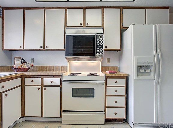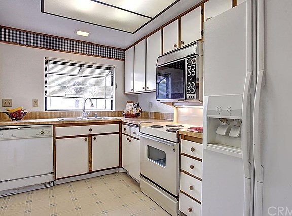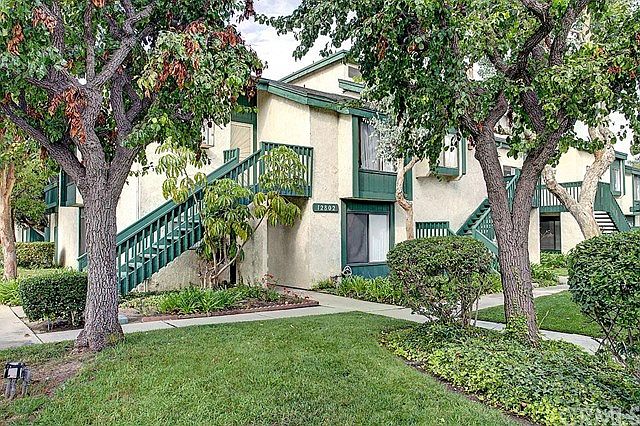 This refreshed and ready single level condo is truly move in ready! Conveniently situated at street level, this imminently livable floorplan features two large bedrooms, one on each end of the unit. It allows for maximum privacy, yet the living space is open and flows well for family gatherings or entertaining. The updated and extended kitchen features a sunny garden window and has generous storage with a pantry, quartz countertops and motionsense Mohen sink faucet. It opens to the dining area and living room. The large living room has a wide sliding door that leads to the private patio with additional storage. The main master bedroom features a triple wide closet, newer laminate floor planks, and access to the private patio by way of the sliding doors. There's an en suite full bath with dual sinks and plenty of storage. The second bedroom is at the opposite side of the unit and also has newer laminate plank flooring and generous closets. The main bath is adjacent and has a new full size shower enclosure. There are also laundry hookups that include nearly new washer and dryer! The garage is convenient to the front door and has an opener. It's well located in this quiet, gated community walking distance to the Haster Recreation Area and close to the 22/5/57 freeways. The community has a pool and spa, too!