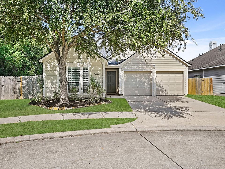 This stunning, move in ready one story home is ideally located on a cul de sac lot in the amenity-rich community of Lakeshore, and is zoned to fantastic schools! Home features an expansive living and dining space with hardwood flooring, a kitchen with breakfast bar and included refrigerator, primary retreat with en suite bath with soaking tub, separate shower, and large walk in closet, two ample secondary bedrooms with walk in closets, another full bathroom, and an extended patio overlooking the wooded area behind the property, that gives it privacy and seclusion! ROOF REPLACED 2025! Neighborhood amenities include a clubhouse, fitness center, pool, tennis courts, playgrounds, parks, and jogging trails! Within close proximity of schools, area restaurants and grocery stores, and IAH! Reasonable commute to downtown!