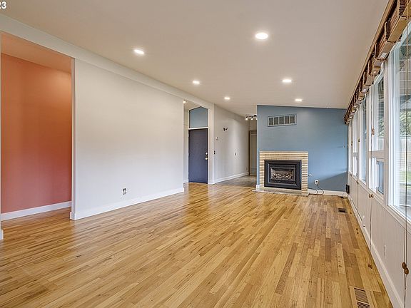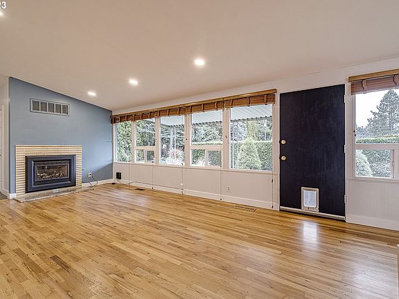 Welcome to the heart of Portland's Parkrose/Russell neighborhood, where this distinctive, single level home awaits your discovery. The home's unique, non-cookie-cutter design sets it apart, offering a character that resonates with individuality. Nestled in a tranquil and well-established residential neighborhood, this residence offers a peaceful retreat. As you step inside, the recently refinished original hardwood floors create a warm and timeless ambiance in the inviting open concept layout. Enjoy the bright and airy atmosphere illuminated by rows of large windows, providing a scenic view of the private fenced backyard. Midcentury vaulted ceilings add a vintage touch, while the gas fireplace in the living room ensures cozy evenings. The kitchen boasts granite counters, a full-height backsplash, and a built-in dining area. Practicality meets style with a convenient built-in pantry and storage solutions. Recent upgrades elevate the home, including recessed dimmable living room lights, new dining light fixtures, a refreshed bathroom with new fixtures, toilet, vanity, shelves, and lighting. Step outside onto the covered front and back porches, providing the perfect spots for relaxation.Take advantage of the proximity to the up-and-coming Gateway neighborhood. Enjoy walkability to parks, including dog parks and playgrounds. Nearby to Glendoveer, the area offers a fantastic walking/running path, golf course, tennis, and dining options. Easy access to highways, the airport, and the natural beauty of the Columbia River, Columbia Gorge, and Mt. Hood.Make this distinctive property your home sweet home today! [Home Energy Score = 3. HES Report at https://rpt.greenbuildingregistry.com/hes/OR10224556]