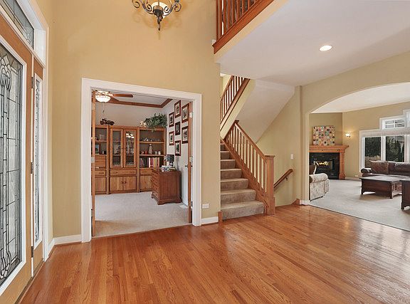 This home looks professionally decorated. Great colors, updated light fixtures, BEAUTIFUL wood accents/floors, cabinetry, granite counters, KitchenAid SS appliances, large windows, tons of closet space. BIG eat-in kitchen opens to family room for entertaining that can extend to the outside patio. HUGE unfinished bment (roughed-in plumbing) & separate work area = many possibilities: wine cellar/music studio.