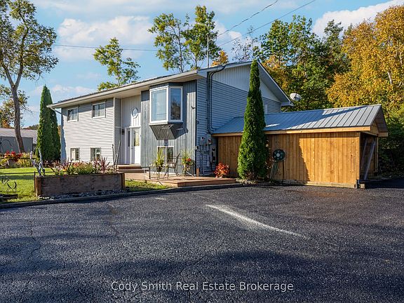 THIS 4 BEDROOM, 2 BATHROOM HOME WITH OVER 2,200 SQ. FT. OF FINISHED LIVING SPACE PERFECTLY COMBINES MODERN COMFORT, ENERGY EFFICIENCY, AND VERSATILITY. SOLAR PANELS ON A NET ZERO AGREEMENT GENERATE MOST OF THE HYDRO USED, WHILE A GENERAC GENERATOR KEEPS THE HOME FULLY OPERATIONAL.INSIDE, YOULL FIND A BRIGHT MAIN LIVING AREA, A WALK OUT PRIMARY SUITE WITH OFFICE, UPDATED BATHROOMS, AND A FULLY FINISHED LOWER LEVEL FEATURING A FAMILY ROOM WITH FIREPLACE, RECREATION ROOM, AND GUEST BEDROOM. THE 4-SEASON ROOM OFF THE PRIMARY BEDROOM PROVIDES A RELAXING RETREAT YEAR-ROUND CURRENTLY USED AS AN OFFICE SPACE, BUT ITS USE IS LIMITED ONLY BY THE IMAGINATION.THE PROPERTY ALSO FEATURES A LARGE WORKSHOP, CURRENTLY SET UP AS A GYM BUT EASILY ADAPTABLE FOR ANY USE, AND A 40 SHIPPING CONTAINER FOR EXTRA STORAGE. ADDITIONAL HIGHLIGHTS INCLUDE 40 AND 20 CARPORTS, A FULLY FENCED FRONT YARD, AND A BEAUTIFUL BACKYARD OASIS, OFFERING SPACE FOR HOBBIES, ENTERTAINING, OR FAMILY ACTIVITIES.CONVENIENTLY LOCATED ON A MAIN ROAD BUS ROUTE & CLOSE ACCESS TO HIGHWAY 400. JUST MINUTES TO COLDWATER, 20 MINUTES TO MIDLAND, 25 MINUTES TO ORILLIA & BARRIE, AND 1 HOUR TO TORONTO, THIS HOME OFFERS A PERFECT BLEND OF CONVENIENCE, FUNCTIONALITY, AND LIFESTYLE. BOOK YOUR PERSONAL TOUR TODAY!