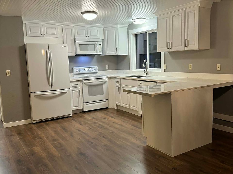 The house has been fully remodeled, featuring new paint, countertops, floors and a new toilet for completely updated look.