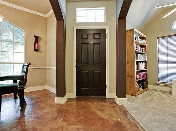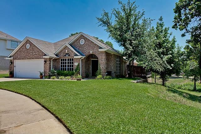 Stunning, one-story home with numerous upgrades on the BEST lot in the neighborhood. Home backs to the CREEK and sits on a quiet cul-de-sac! Amentities incl custom paint, stained concrete floors, tall ceilings, beautiful fireplace. Large kitchen with breakfast bar and gas cooktop is open to the living room. Panoramic views of the creek from the huge deck in the backyard & there is still plenty of grass space too. This home is undeniably special!