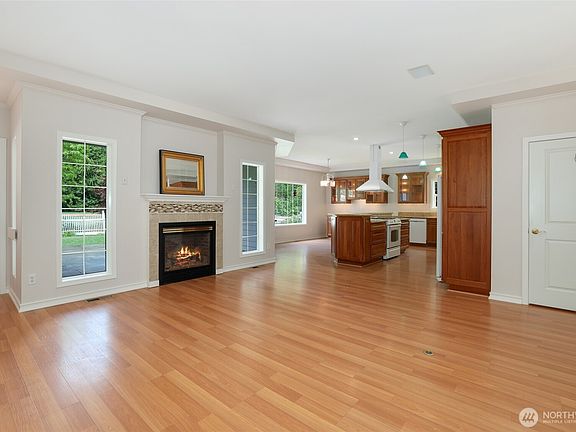 Anderson Island - quaint, historic, quiet. You'll love the simplicity of island living combined with comfort. TWO LOTS - one big property, so much opportunity. Easy rambler living boasting space inside and out. Kitchen features beautiful real wood cabinetry and granite counter tops, connecting to the living room w/ cozy fireplace. Bring the outside in with doors that lead to your large patio - perfect for entertaining. Large primary bedroom with full ensuite bathroom & closet space. East side of the property has a large gazebo with deck, and wood burning fireplace + detached HUGE garage, perfect for hobbyist/car storage, RV/Boat w/ separate gated entrance. Long driveway leading to an attached 2 car garage. Generator attached to home.