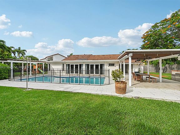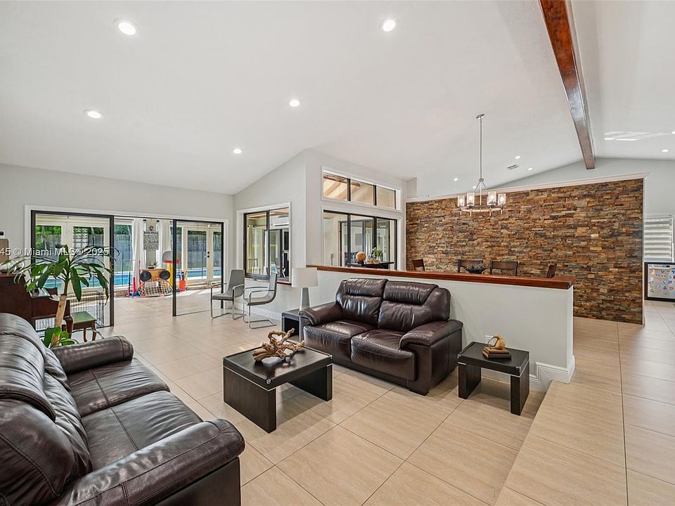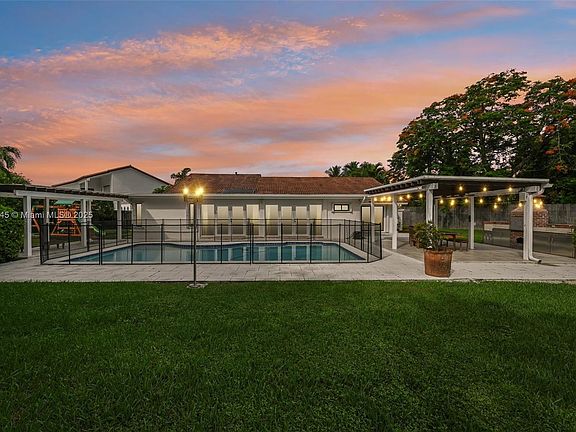 This beautifully maintained 4 bed, 3 bath home boasts over 3,200 sq ft under A/C in a peaceful, family-friendly neighborhood. Vaulted ceilings, ceramic floors, and a bright sunroom/playroom with atrium and skylight create a welcoming interior. Impact patio doors open to a private backyard oasis with lush greenery, a sparkling pool, and tons of room for entertaining or relaxing in your own tropical escape with two gazebos to complement the pool area. The durable metal roof has the elegant look of barrel tile and is built to last. Closets feature built in shelfing. A spacious layout and exceptional care, make this home truly move in ready. You couldn't ask for a better location with everything you could need 5 minutes or less away. There's plenty more that won't fit here.