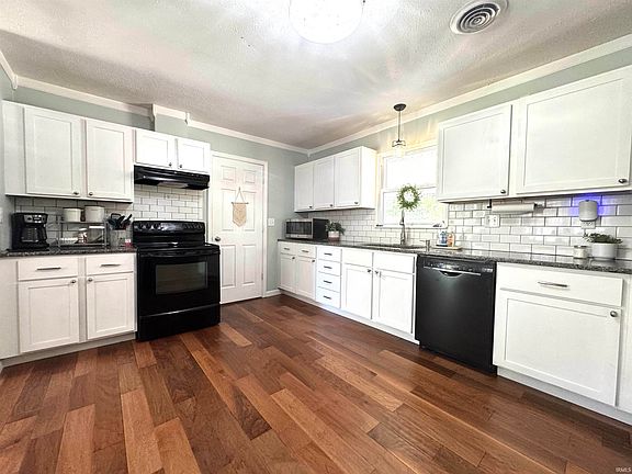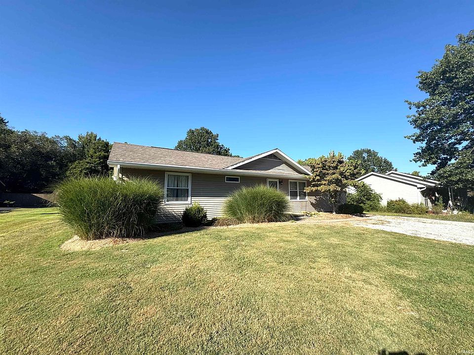 Wonderfully maintained 4 bedroom, 2 bath one-level home in desirable location! Tastefully updated throughout with open concept kitchen, dining, and living room! Kitchen boasts granite countertops with modern white cabinets for storage. 4 spacious bedrooms with 2 bathrooms each equipped with tiled showers! Separate mud/laundry room! Peaceful back yard setting with covered porch overlooking the yard! 34x32 pole barn in back! Check it out!!