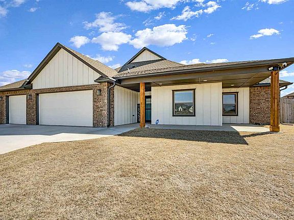 ELGIN SCHOOL DISTRICT This meticulously maintained 2-year-old home offers more than brand new construction to include gutters and a water softner. The open-concept layout seamlessly connects the living, dining, and kitchen areas, creating an inviting atmosphere ideal for both relaxation and entertaining. The expansive living room is anchored by a cozy fireplace, serving as a central gathering spot. The chef-inspired kitchen is equipped with a gas stove, a sizable pantry, and modern appliances, granite countertops, and a large island catering to culinary enthusiasts. The relaxing master bedroom includes a luxurious en-suite bathroom with a whirlpool tub, a separate shower, and a walk-in closet, offering a private retreat. The backyard offers a covered patio and a nice privacy fence. This home exemplifies contemporary living with its thoughtful design and high-quality finishes, making it a standout choice for discerning buyers. Contact Tiphanie Murphy to view. 580-512-2135