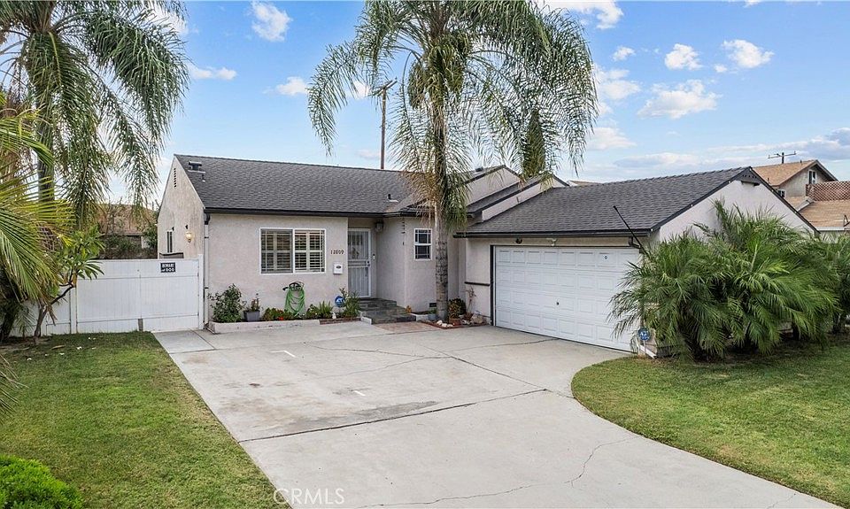 Beautifully Updated Corner-Lot Home with Outdoor Entertaining Space! Move-in ready and upgraded, this stylish 3-bedroom, 2-bath home sits on a spacious corner lot with possible RV access and fantastic curb appeal. Palm trees, dual pane windows, and custom exterior finishes set the tone before you even step inside. The interior features laminate flooring, plantation shutters, recessed lighting, and custom paint with detailed crown molding and baseboards that create a warm and polished atmosphere throughout. The remodeled kitchen is a Standout! Showcasing rich cherrywood cabinets, granite countertops, stainless steel appliances including a wine fridge, tile flooring, and a large pantry with plenty of storage. Both bathrooms have been tastefully updated. The hall bath features a newer vanity, tile shower, and matching tile floors, while the primary suite offers an upgraded tile shower, updated vanity, and a walk-in closet for added convenience. All three bedrooms are generous in size and offer flexibility for family living, guests, or a home office. The outdoor space is ideal for relaxing or entertaining, featuring a newer covered patio with recessed lighting and pavers that create a comfortable, finished area for dining or lounging. The corner lot provides added privacy and room to grow, along with the benefit of potential RV access. With modern upgrades, inviting finishes, and a prime location, this Norwalk gem offers the California lifestyle at its best!