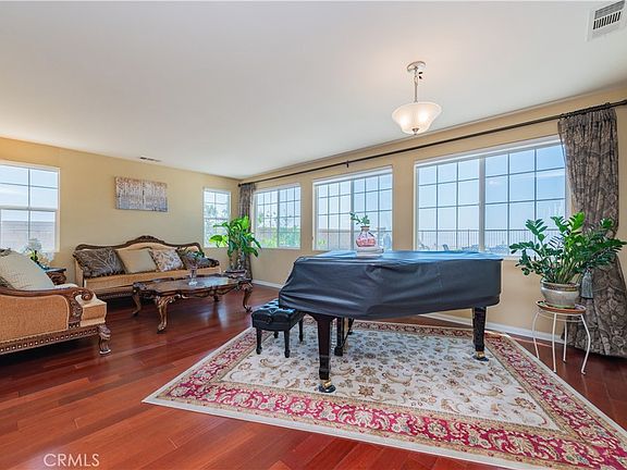 Welcome to this amazing Château-style home immaculately maintained by the original owners for the past 15 years with sweeping mountain and city light views. Nestled in an elevated location this residence offers exceptional privacy having only one neighbor to the right. Besides builder upgrades of $73K ( see the supplement), the owners added modern window decorations, one year old water heater, whole house soft water system, pure water system, custom-made front door and built in cabinet and easy maintenance front and backyard. Builder upgrades include wood floors, rain gutters, finish trim, open rail in lieu of pony wall, brand appliances, countertop, water system, sliding mirrored closet doors, self-closing cabinet doors, hidden trash can etc... Featuring 4 spacious bedrooms plus a versatile study that can easily be converted into a 5th bedroom, the layout is ideal for a growing family or multigenerational living. A convenient downstairs en-suite bedroom with a private bath is perfect for guests or elderly family members. The home welcomes you with a soaring ceiling entry that leads to a formal living room, seamlessly connecting to a spacious open-concept kitchen and family room—an ideal space for entertaining. The modern kitchen is equipped with granite countertops, stainless steel appliances, an oven and a gas stove.