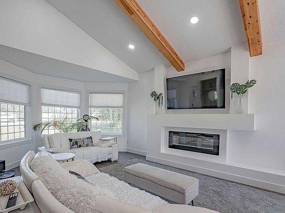 Riverfront propertyNew stylish kitchenNew electric gas fireplaceNew vinyl flooringGas stoveQuartz countertopsUnder mount sink