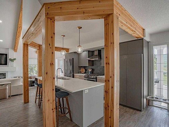 Everyone deserves to come home to a place thats straight out of a magazine.This riverfront property has been renovated from top to bottom, with new stylish kitchen, living room, new electric gas fireplace, new vinyl flooring, doors, vanities, trim, fixtures, front door, garage door/lift, windows and hardwares. You will find 3 beautifully styled bedrooms with 1 den down in the basement. There are 2 full bathrooms and 1 half bath on the main level. I absolutely love the kitchen which features beautiful black stainless appliances, gas stove, quartz countertops, under mount sink, soft closed cabinets and a breakfast bar. They have installed a wall pantry for additional storage which is tucked away in the large dining room. Living room showcases vaulted ceilings with lots of windows allowing the sun shine through all morning long! With all those windows we have you covered from the summer heat with the central air. Master bedroom features 2 of my favourite spots, the balcony and the soaker tub in the ensuite that overlook the river! Basement is fully developed with space to make a 4th bedroom, but for now its a great media room with a den. Finished and heated attached garage with large concrete driveway and rv parking. This home is situated on a .35 acre of a lot that backs directly onto the Peace River, but it has an amazing set up in the backyard for people who really utilize their yards. We have a nice fire pit area set up with a gazebo, garden shed and a large composite deck. There is a mature trees and space to add a garden. The yard is fully fenced and landscaped with irrigation. This home has had the shingles replaced. Call for more information on this property.