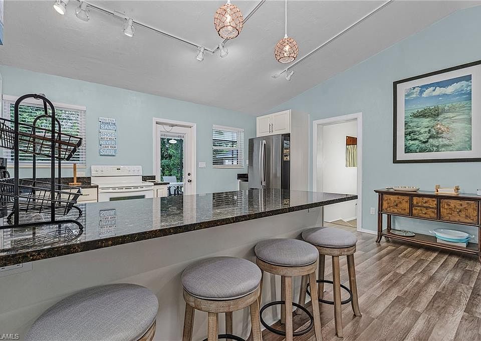 Welcome to Your Naples Getaway! Escape to sunny Naples and make yourself at home in this spacious and beautifully appointed four-bedroom, two-bathroom retreat, nestled in the heart of the charming and family-friendly Lake Park neighborhood. Inside, the open-concept layout offers a bright and airy living space with a modern kitchen, inviting dining area, and comfortable seating perfect for relaxing with family or entertaining friends. Step outside to your private tropical oasis, where lush landscaping surrounds a covered sitting area ideal for sipping your morning coffee or enjoying cocktails as the sun sets. Bringing your pup? Small dogs are welcome, so your furry friend can join the fun too! This home comes fully equipped for your beach adventures, including chairs, towels, an umbrella, and coolers just pack your sunscreen and you're ready to go. Walkable favorites like Lake Park Diner and Coastland Center are just minutes away, and nearby Fleischmann Park offers endless activities for kids and adults alike: a playground, splash pad, skate park, and courts for pickleball, basketball, and racquetball. You're also just a short drive from top Naples attractions: Naples Beach & Pier, Lowdermilk Park, Naples Zoo, Downtown 5th Avenue dining and shopping, River Park Aquatic Center with its free splash area, water slide, and lap pool. When it's time to eat, enjoy a variety of local dining options including: Twin Peaks, Uncle Julio's, Charred at Jimmy P's Butcher Shop, Food & Thought Organic Cafe, Einstein Bros. Bagels, and more. Whether you're here for beach days, boutique shopping, or simply to unwind in paradise, this Lake Park home offers the perfect base for your ideal Naples escape.