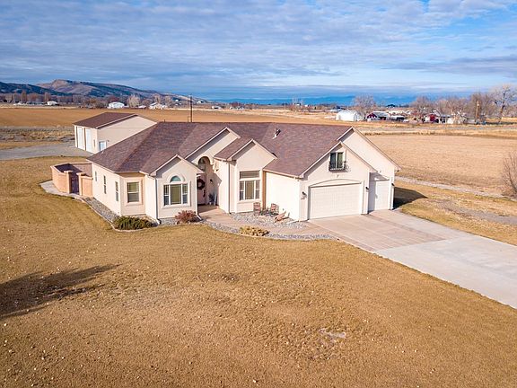Beautiful home on over 1.5 acres in Loma. Great views in every direction. Upon entering the front door you will see the large living room with a gas fireplace and hardwood floors. The neighboring kitchen features granite countertops, stainless appliances, a large pantry, and eating area. The primary bedroom includes a sitting area, walk in closet and 5 piece bath. The 2nd bedroom has its own bath. A lovely office with french doors is located off the entry way. Go upstairs to a bonus/family room that can also be a 4th bedroom. The home boasts a 3 car attached garage, but wait, there is a 40X60 heated shop with two 14' overhead doors and RV parking. Enjoy the outdoors on the huge back patio or out in the yard. This one has everything.