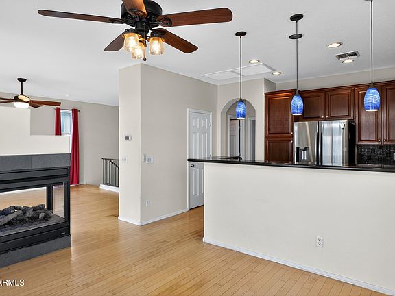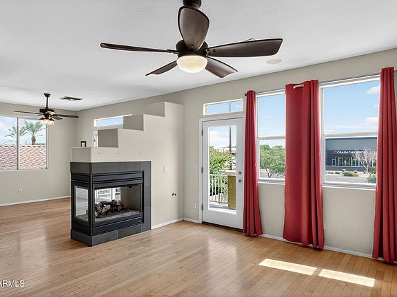 Location, Livability & Investment Potential! Nestled in the heart of Gilbert, this charming 2 bedroom, 2 bathroom home is an incredible opportunity for first-time buyers or savvy investors. With its prime location just minutes from SanTan Village, Loop 202, shopping, dining, and top-rated schools, this home offers unbeatable convenience and lifestyle perks. Step inside to find a bright, open layout with stylish wood floors, vaulted ceilings, and a cozy double-sided fireplace that warms both the living and dining spaces. The spacious kitchen is complete with stainless steel appliances, granite counters, and rich cabinetry—perfect for cooking or entertaining. Upstairs, enjoy an abundance of natural light and direct access to a private balcony ideal for morning coffee or evening relaxation. The generously sized backyard is a blank canvas with endless potential plenty of space to build your dream outdoor retreat. Whether you're looking to settle into your first home or expand your rental portfolio, this home checks all the boxes: location, layout, and long-term value. Don't miss your chance to own in one of Gilbert's most desirable neighborhoods!