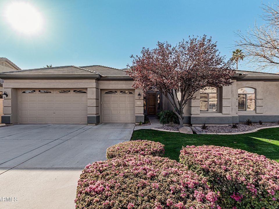 Semi-custom home by Jackson Prop, original owner. Open & spacious floor plan. Custom upgrades incl cased windows, stained glass, custom built-ins in den w/tv included and built in murphy bed. New dishwasher. R/O under kitchen sink. Under & over cabinet lighting in kitchen. New carpet installed in January. 10 & 12 ft ceilings. Crown molding and 7'' baseboards throughout. Custom wood shutters on all windows. New LED cans installed in January throughout. Family room wired for surround sound, speakers in ceilings throughout the home incl garage. Wired for security alarm. Ring doorbell cam. Hale dog door that leads to dog run. Custom garage cabinets & coated garage floor. Outdoor kitchen and fireplace. New landscaping & irrigation in front and back yard. New int & ext paint in Nov.