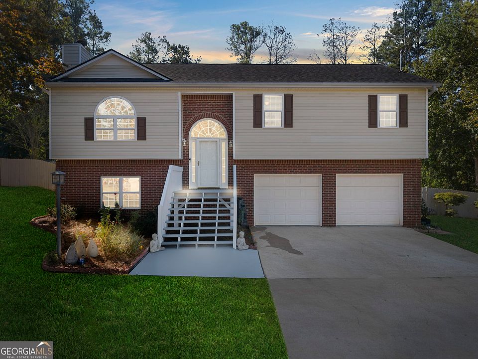 Welcome to this beautifully maintained split-foyer home offering space, comfort, and privacy with no HOA. The home features an inviting brick front, a newer roof installed in 2022, and a spacious driveway leading to a two-car garage. Inside, you'll find a bright, open layout with vaulted ceilings and a cozy fireplace that creates a warm and welcoming feel. The kitchen and dining area provide plenty of cabinet and counter space, ideal for everyday living or entertaining. Upstairs offers three bedrooms and two full bathrooms, while the lower level includes two additional finished rooms and a full bathroom, perfect for an office, playroom, or guest space. Enjoy the private fenced backyard, ideal for relaxing, entertaining, or letting pets play freely. Situated in a quiet neighborhood close to schools, shopping, and dining, this home is move-in ready and offers a wonderful blend of comfort and functionality.