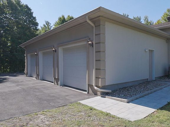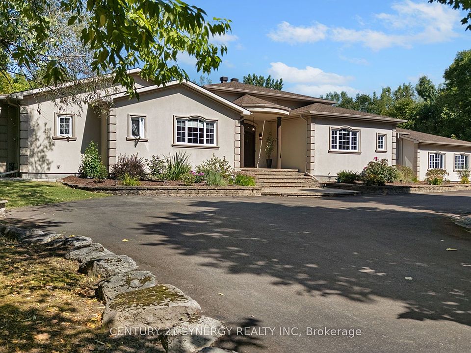 This luxurious multi-generational executive bungalow in prestigious Du Gouverneur Estates is designed to impress at every turn. Spanning over 4,200 sq.ft. above grade plus a fully finished lower level, this one-of-a-kind home offers a rare blend of elegance and versatility. Set on a private 1.97-acre lot on a quiet cul-de-sac, this residence features a 3-car oversized garage, expansive principal rooms, and high-end finishes including hardwood, marble, and tile flooring. The grand entrance welcomes you into a stunning great room with both a sitting area with a gas fireplace, a formal dining room and soaring 15-ft ceilings. The chef's kitchen is a dream, complete with granite countertops, a raised breakfast bar, an oversized island, stainless steel appliances, an abundance of cabinetry, and a walk-in pantry. The kitchen overlooks a spacious family room and breakfast nook filled with natural lighting. With rolldown hurricane shutters, you can easily convert the family to a movie theatre anytime of the day. The space also leads to a 3-season screened-in sunroom with stamped concrete overlooking the backyard oasis with a 24 foot above-ground pool. The primary bedroom features a 5-piece ensuite and spacious walk-in closet. The other three bedrooms each have their own ensuite and two feature walk-in closets. Also included on the main floor are an office and a large mudroom with laundry. The finished lower level provides an impressive 290sq.ft. recreation room, additional office/flex room, tons of storage, and most importantly, a legal in-law suite with its own private entrance. The suite spans 1,700+ sq.ft., offering 1bedroom + den, full kitchen with pantry, living room, bathroom, laundry, and storage making it perfect for extended family, guests, or as an income-generating opportunity. A whole home standby generator offers peace of mind. This home located just minutes east of Orleans truly has it all - space, style, and flexibility for todays modern lifestyle.