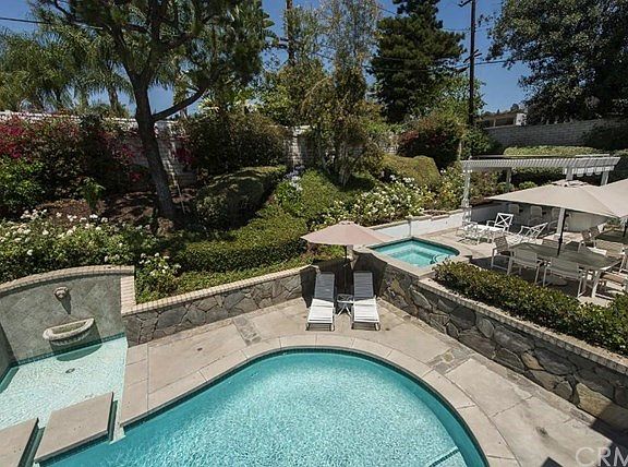 A Real Gem near the Heart of North Tustin, the Hills of Lemon Heights & Award winning Arroyo Elementary School. Landscaping by Frank Torres, award winning landscape architect throughout Lemon Heights & Newport Coast. This consummate Family Home has much to offer from the bright, light & airy floor plan to the backyard swimming pool, spa, outside BBQ & firepit. The home is situated on almost 1/3 acres of land, walking distance to Award winning North Tustin Schools; Foothill High, Hewes Middle & Arroyo Elmentary schools. Remodeled gourmet kitchen, with granite counters, Dacor stainless steel 6 burner stove & 2 oven unit, counter space for meals, recessed lighting, hardwood drawers, Dacor bread drawer, GE Monogram refrigerator & large cabinet pull-outs for ease of use. Built-in backyard kitchen with sink & new BBQ. First floor oversized office with 1/2 bath. Upstairs master suite with balcony & home efficiency center. Master closet to die for; must see to believe! Oversized 3 car garage that can house 3 large SUV's & accomodate vast amounts of storage space. Laundry chute to laundry area in garage with sink. 3 fireplaces throughout the home; office, living room & fam room. 4 bedrooms & 4 baths, approximately 3,217 square feet of living space. A Real Gem!!