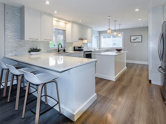 If viewing on Zillow please text/email agent directly, we do not receive Zillow inquiries. Fully Renovated 4 bedroom, 3 bathroom family home sitting on an oversized 7,011 sq ft lot in sought-after North Burnaby neighbourhood. Upper level offers 3 beds, 2 baths, a spacious kitchen with island and breakfast bar, and an east-facing deck perfect for BBQs & morning sun. The main level has a large rec room, 4th bedroom and full bath, roughed in for a ground-level suite with separate entrance. Two fenced yards, double garage and driveway. The house has been updated throughout: roof, windows, fencing, paint, plumbing, hot water tank, kitchen, bathrooms & more. Move-in ready w/room to grow! By appointment. Minutes to SFU, Bby Mountain & Sungiven Foods.