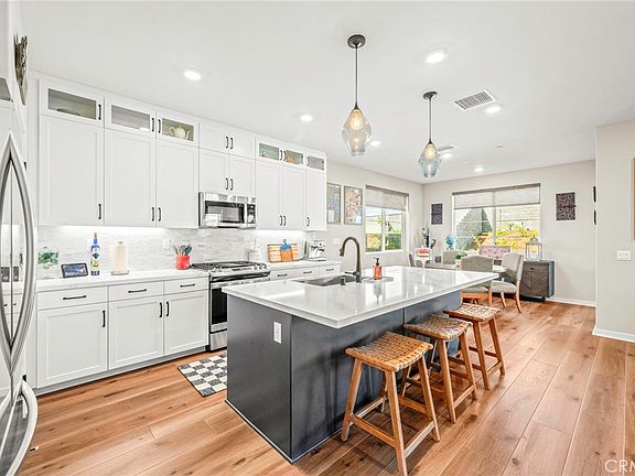 Welcome to an exceptional opportunity to own a nearly new home in the highly desirable Rienda neighborhood of Rancho Mission Viejo. This beautifully designed home offers 2,065 sq. ft. of luxury living with 3 bedrooms, 2.5 bathrooms, and a versatile loft. Situated on a rare oversized lot, this home offers added space and privacy. You'll enjoy energy efficiency and long-term savings with a fully paid solar system, tankless water heater, and whole-house fan. Smart home features include a Ring doorbell, smart thermostat, and smart light switches for added convenience. The inviting open-concept layout seamlessly connects the living room, dining area, and kitchen, making it perfect for both entertaining and everyday living. The chef’s kitchen features elegant quartz countertops, a custom backsplash, an oversized island, walk-in pantry, and stainless steel appliances, including a gas range with griddle. Shaker-style cabinets extend to the ceiling, providing ample storage and a polished look. A convenient half bath is also located downstairs. Upstairs, the loft offers flexible space for a home office, playroom, or media room. The spacious primary suite is a peaceful retreat with walk-in closet with custom built-in storage, dual sinks with quartz counters, a dedicated vanity, and an upgraded frameless walk-in shower. Two generously sized secondary bedrooms share a full bath with dual sinks and a shower/tub combo. Additional upgrades include luxury vinyl plank flooring, custom paint, plantation shutters, and electronic blinds. The backyard is a true private escape with low-maintenance landscaping and a covered California patio with ceiling fan. With no rear neighbors, you’ll enjoy peace and serenity. The garage includes epoxy floors and a smart garage door opener. Living in this award-winning planned community means access to amenities like multiple resort-style pools, clubhouses, fitness centers, scenic trails, sports parks, pickleball courts, firepits and a community farm. With top-rated schools, this is more than a home, it’s a lifestyle and a place to thrive.