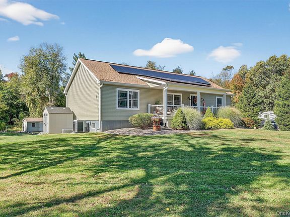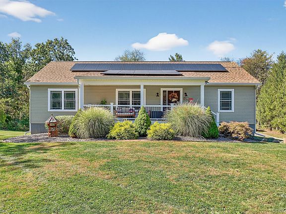 Charming Ranch-Style Home with Solar, Privacy & Designer Basement! Welcome to this beautifully maintained 3-bedroom, 3 full bath ranch-style home, offering the perfect blend of comfort, efficiency, and style. Nestled on a gorgeous, level piece of land, this property is set well back from the road—providing ultimate privacy—yet is just minutes from the Taconic Parkway, I-84, and the heart of town for easy commuting and convenience. Inside, you'll find an open-concept floor plan with beautiful hardwood floors throughout, a sunlit living space, and a thoughtfully designed kitchen and dining area that’s perfect for entertaining. The spacious primary suite is set apart from the other two bedrooms for added privacy and features its own